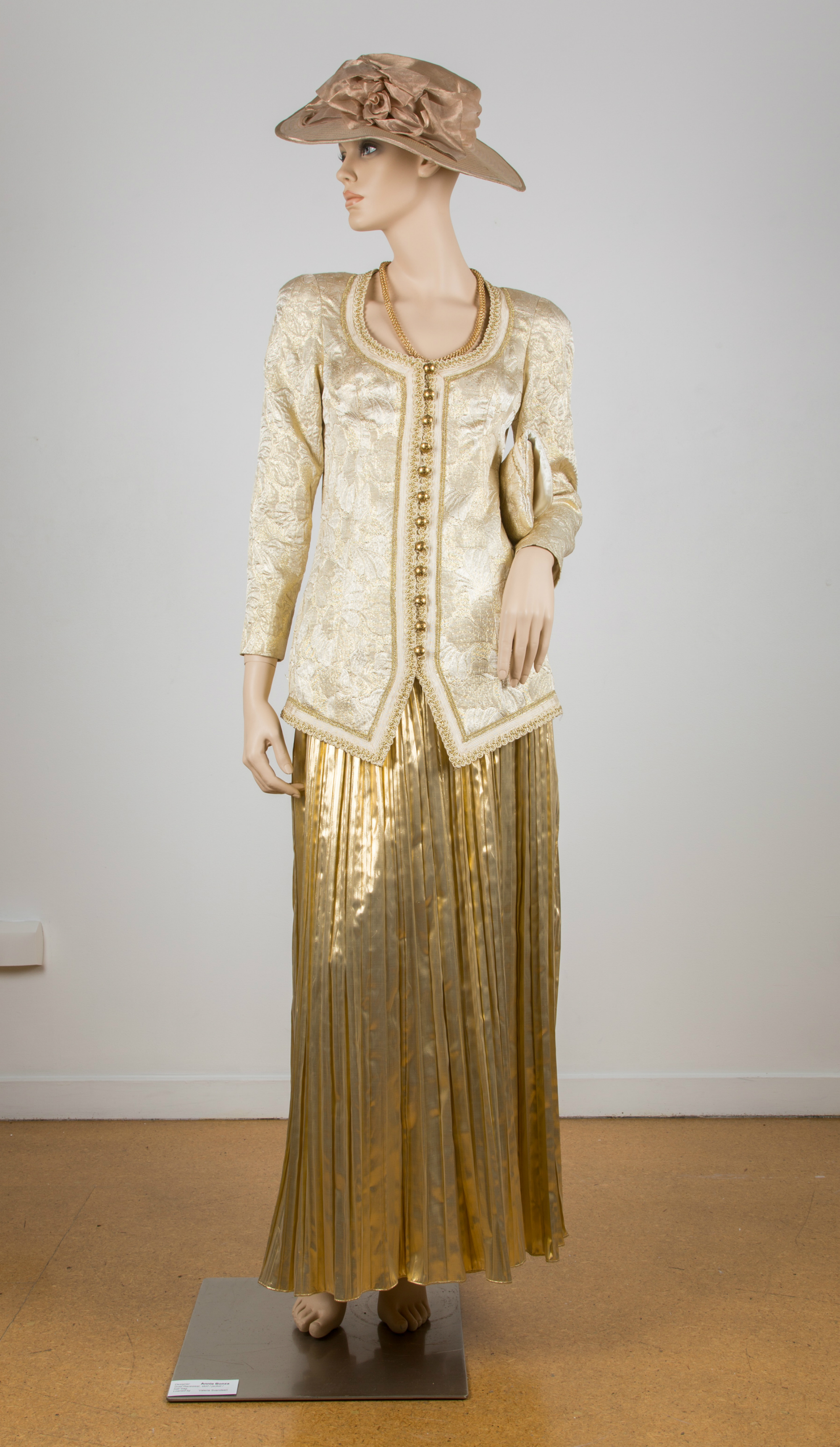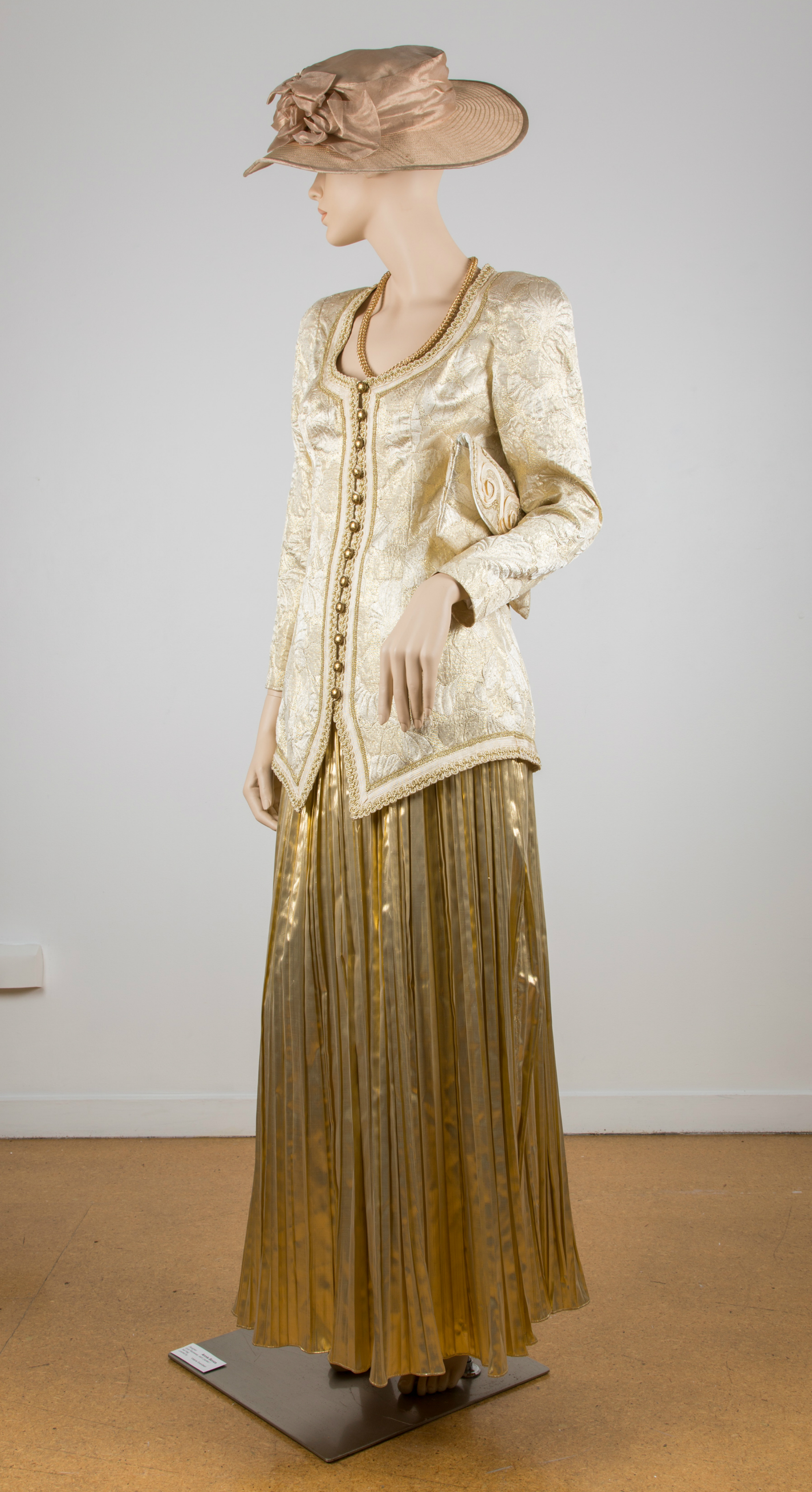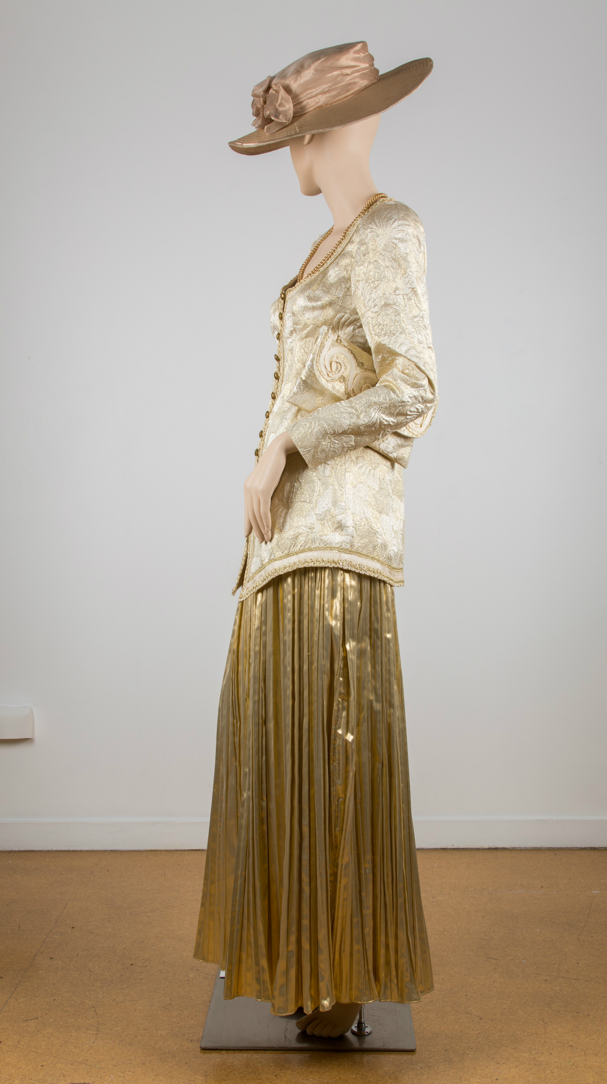 Gold jacket & pleated skirt