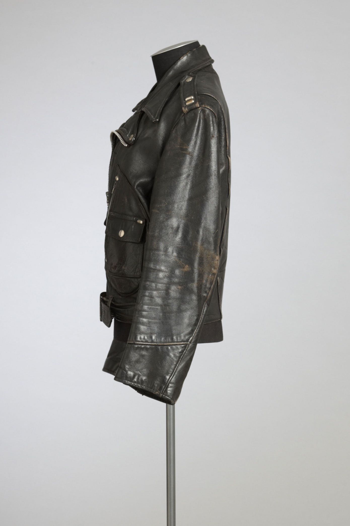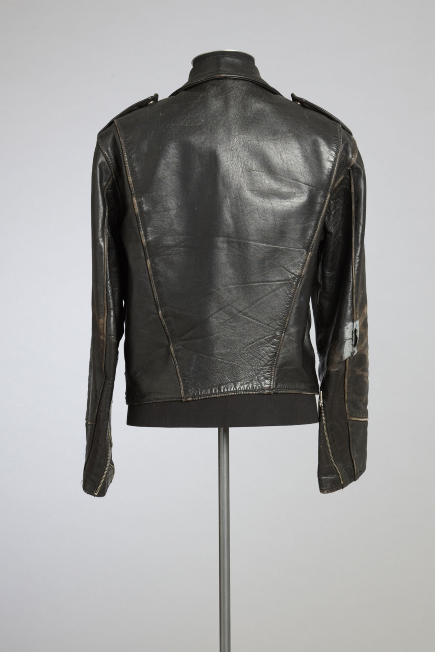 The Chills etched their way into the New Zealand rock consciousness in 1986 with 'I Love My Leather Jacket', written by Martin Phillipps. The song was dedicated to Martyn Bull, who had been the drummer of The Chills when they recorded the classic song 'Pink Frost', but shortly after he was diagnosed with leukaemia and died on 18 July 1983 at the age of 22. Black leather usually has negative associations of rebellion but in this case it represents tenderness and enduring affection for a friend. Read more about wearing the colour black in the New Zealand Fashion Museum publication Black: The history of black in fashion, society and culture in New Zealand.