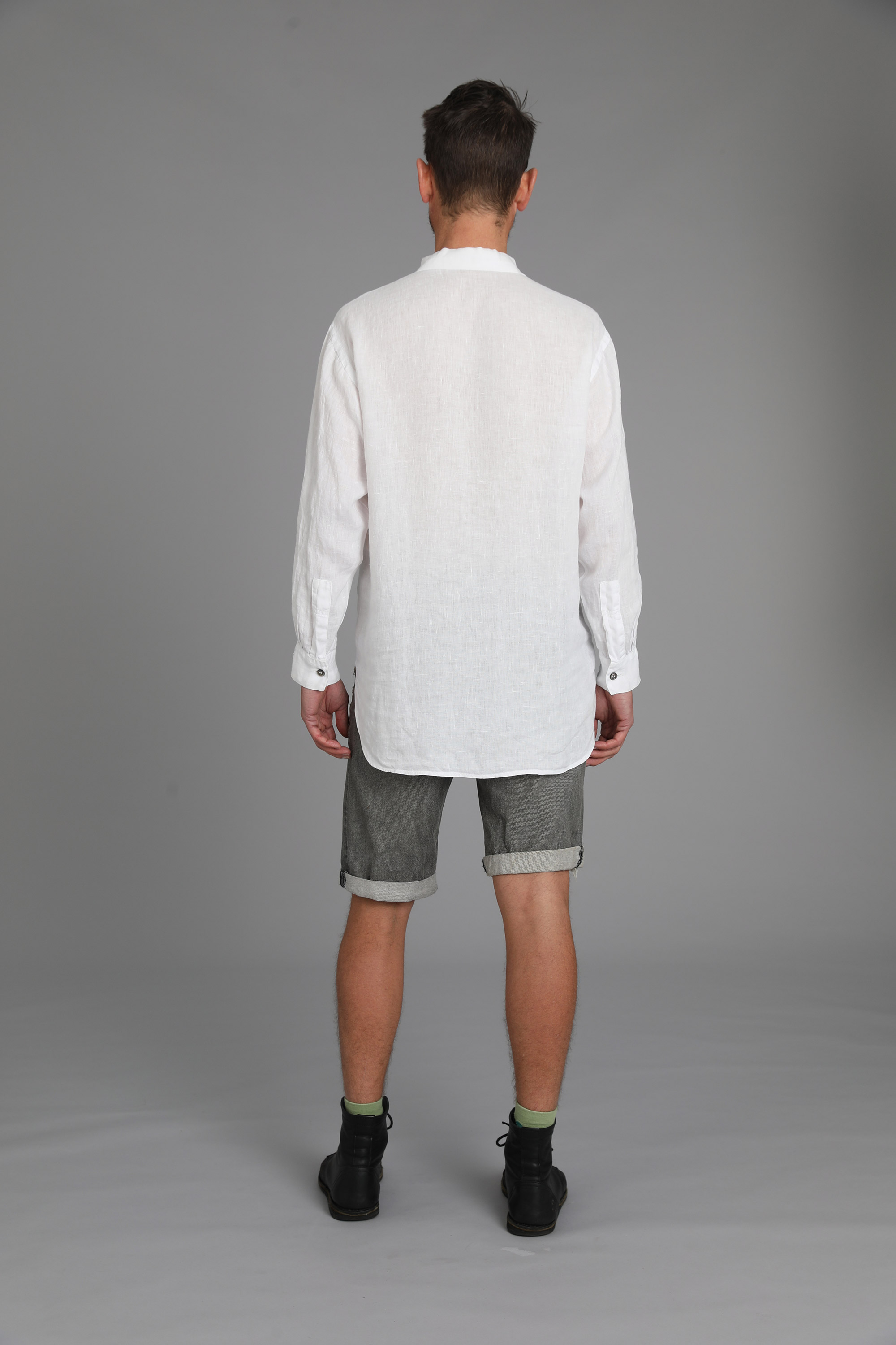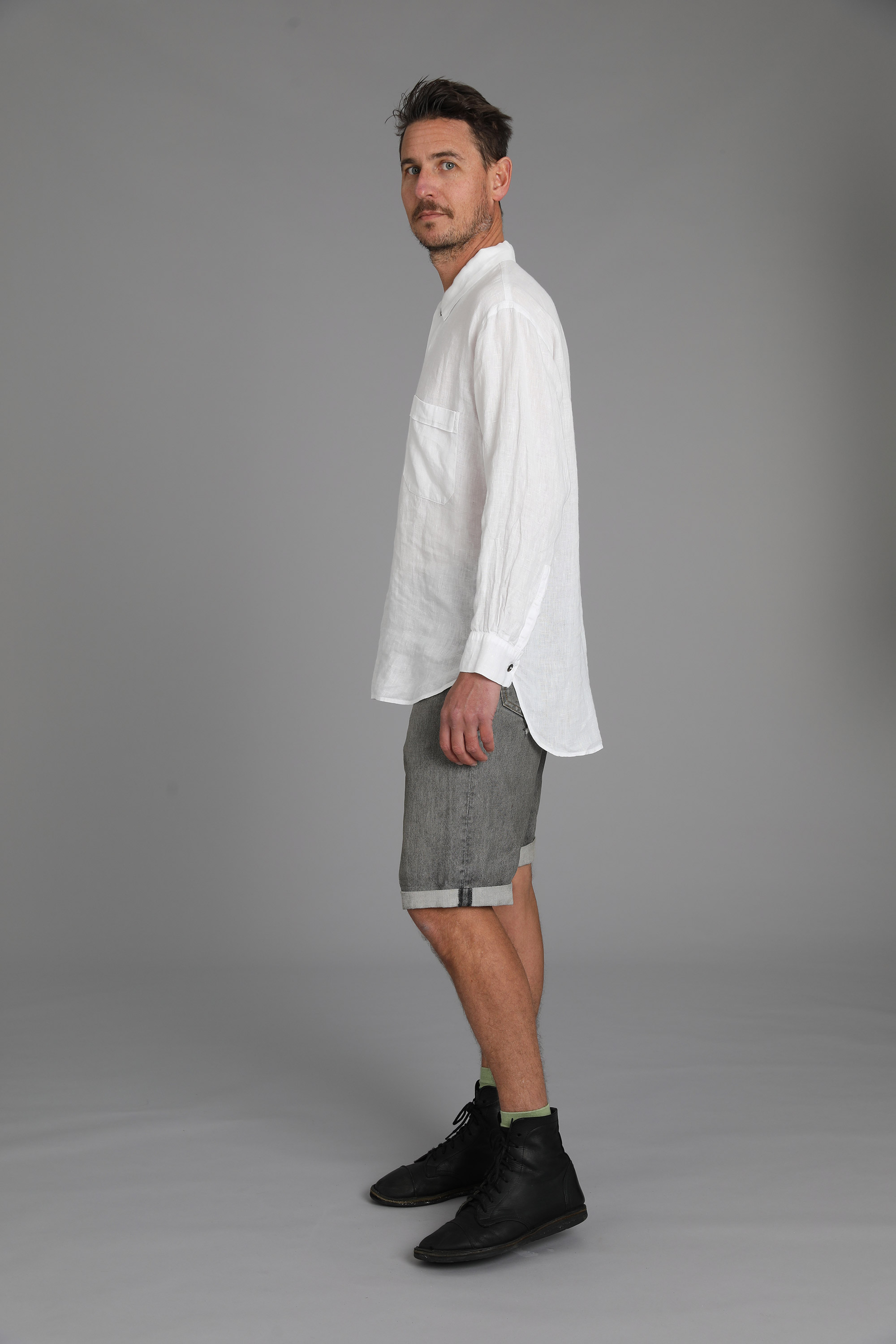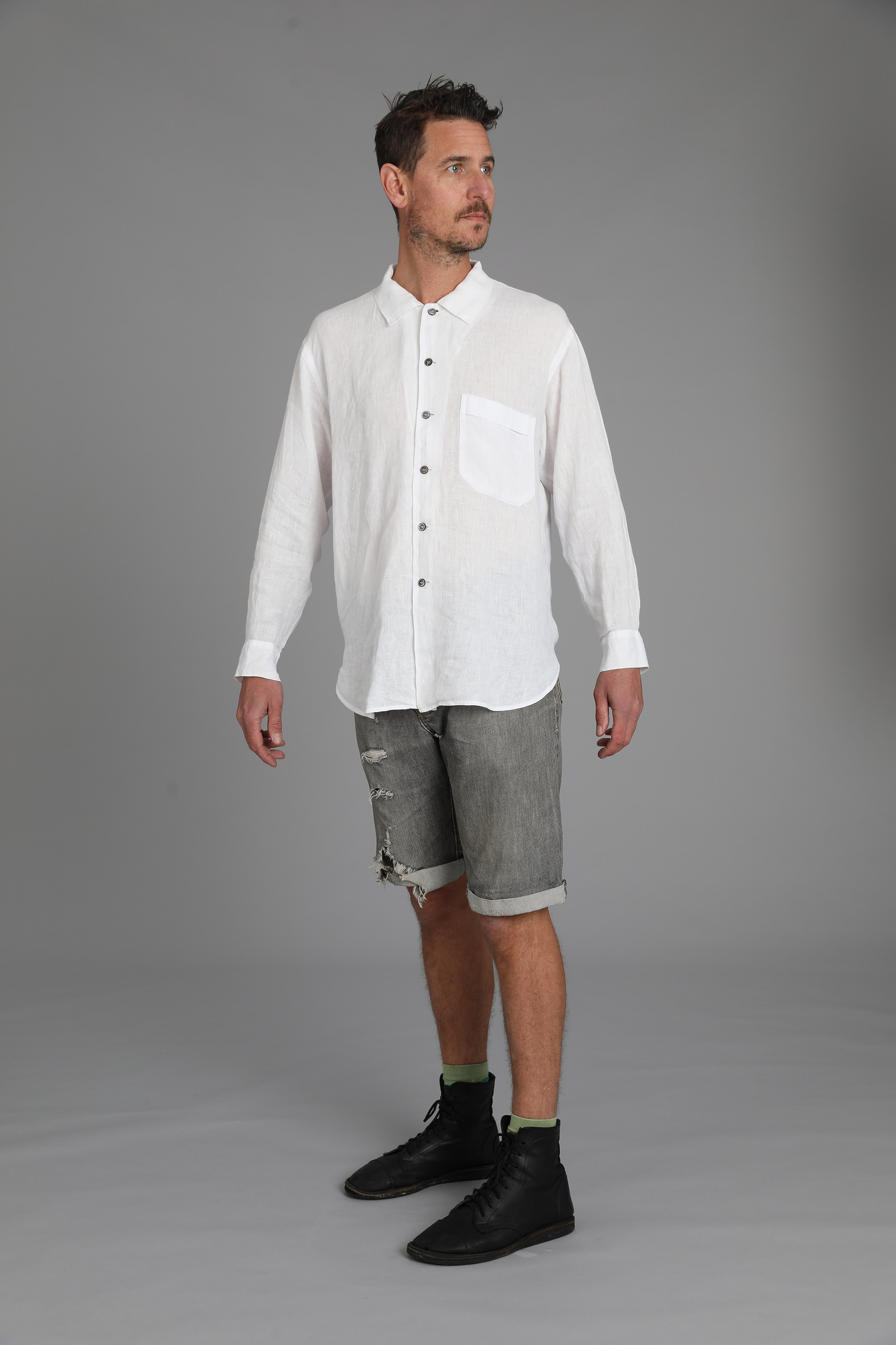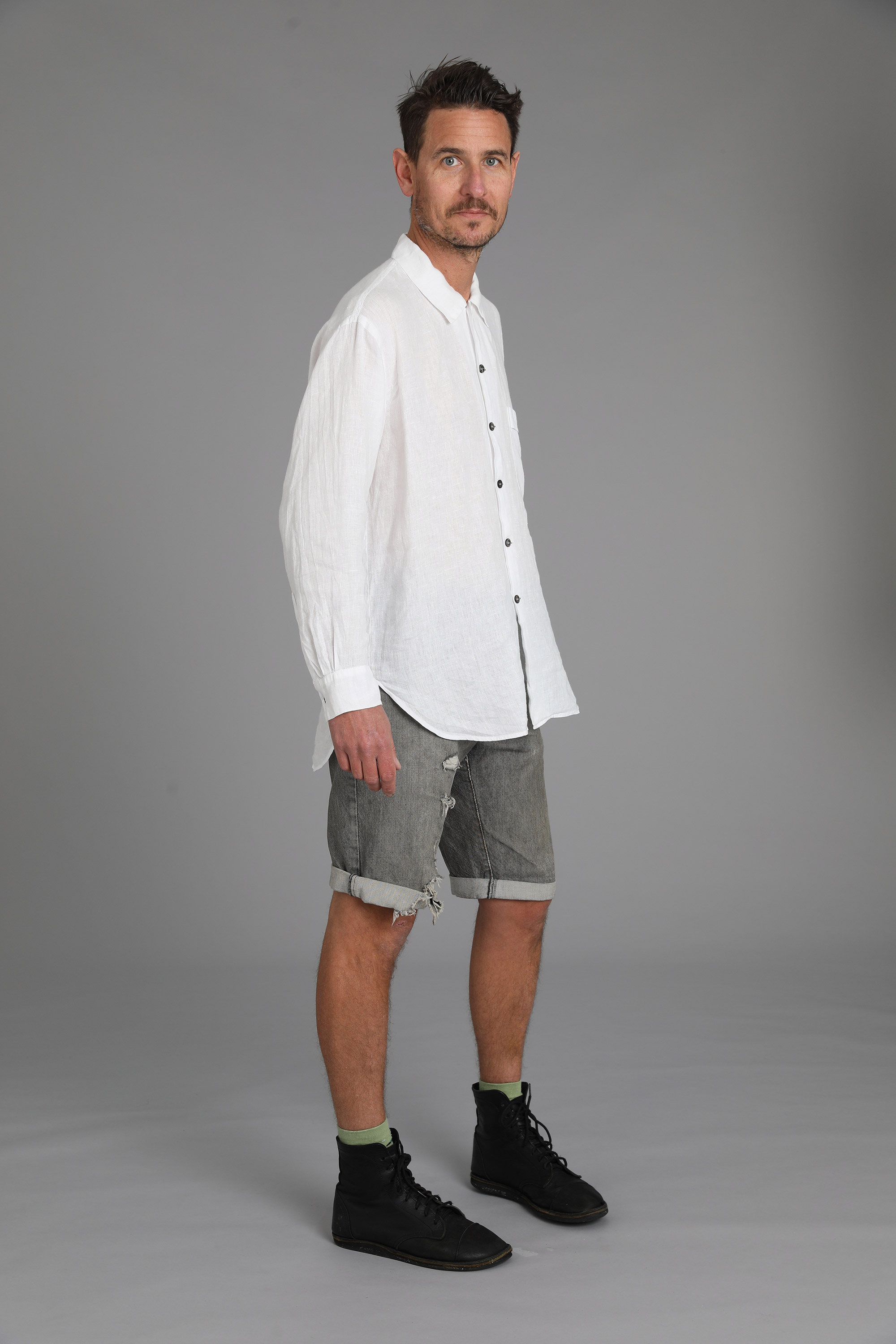 Linen (shirt), shorts (denim)