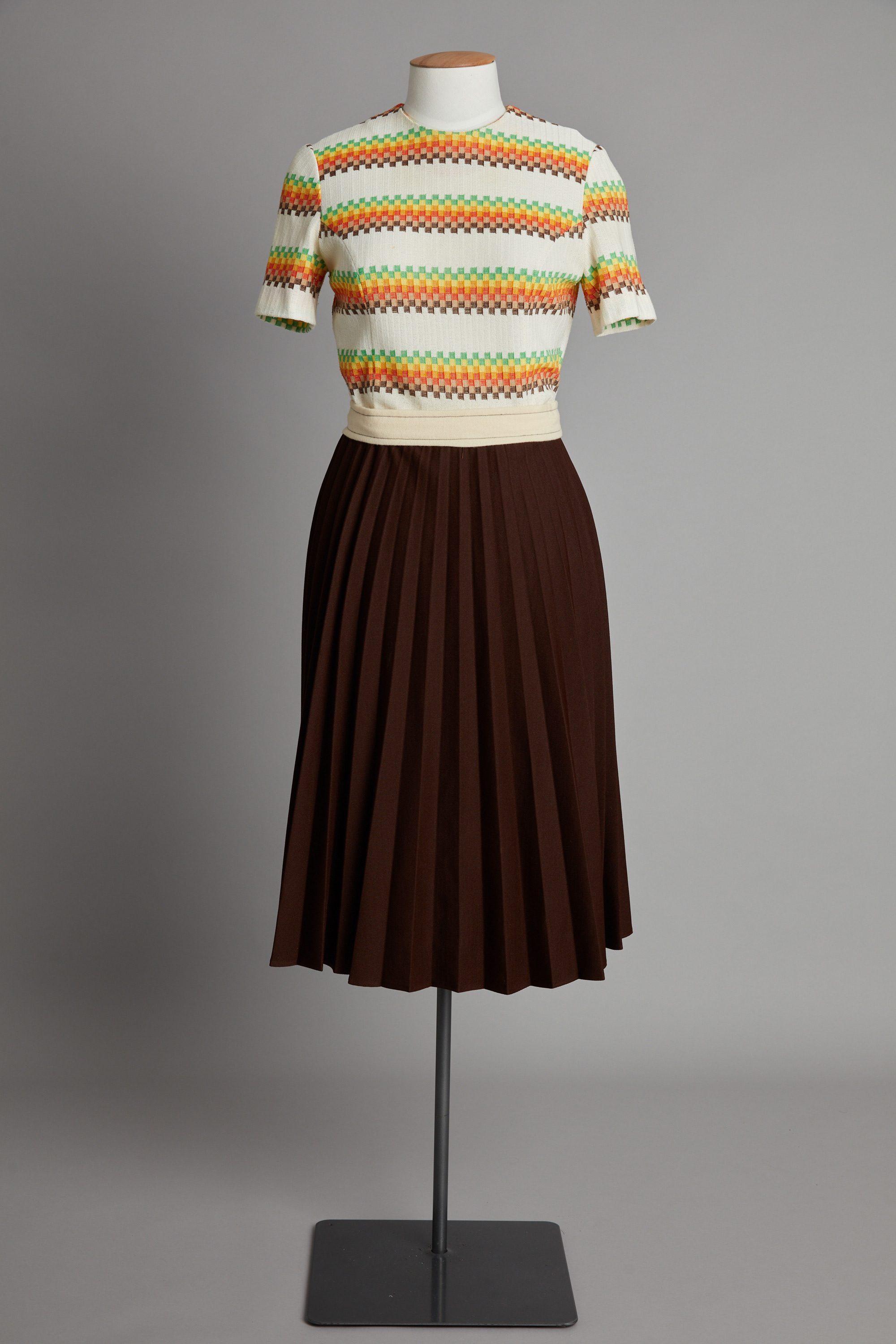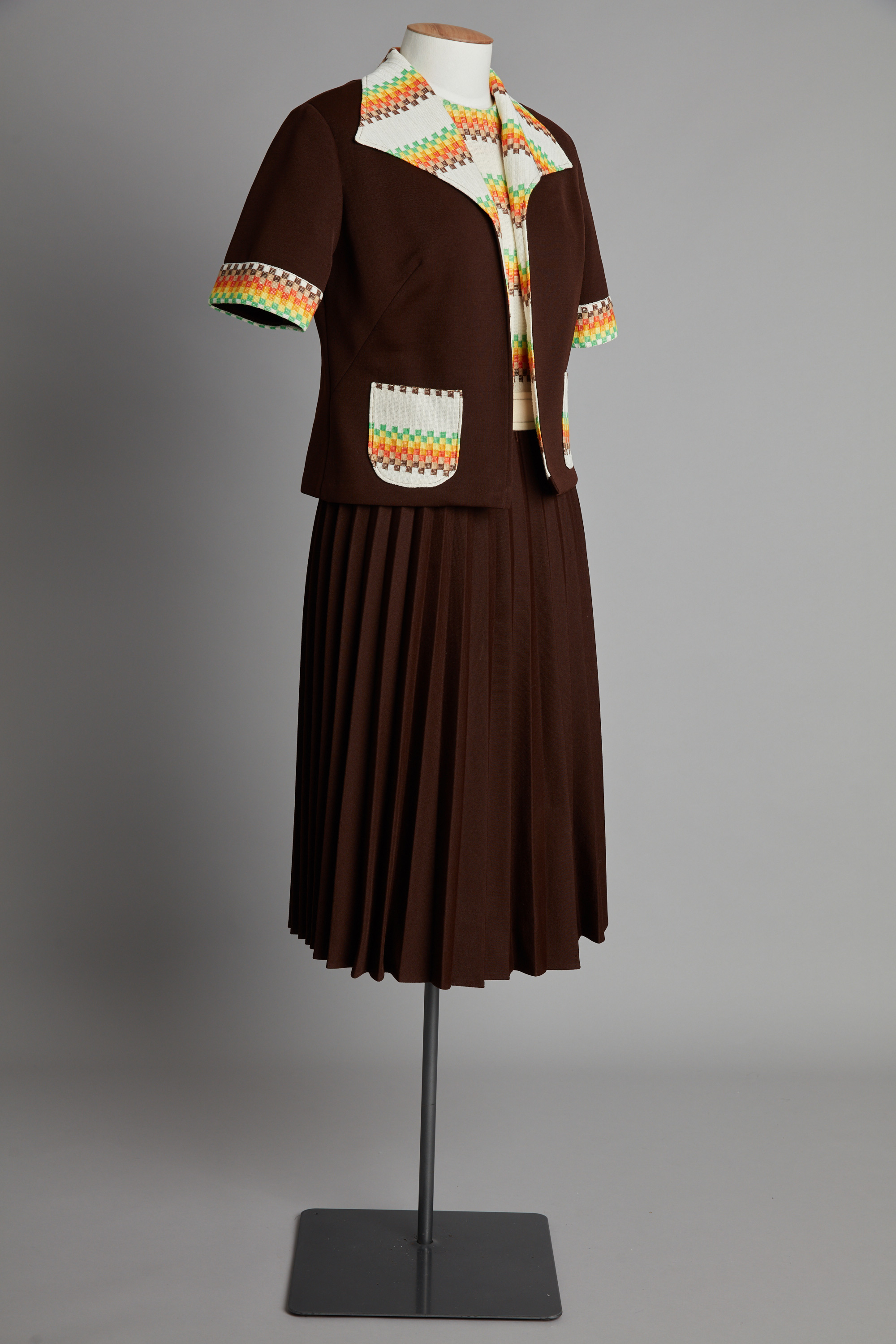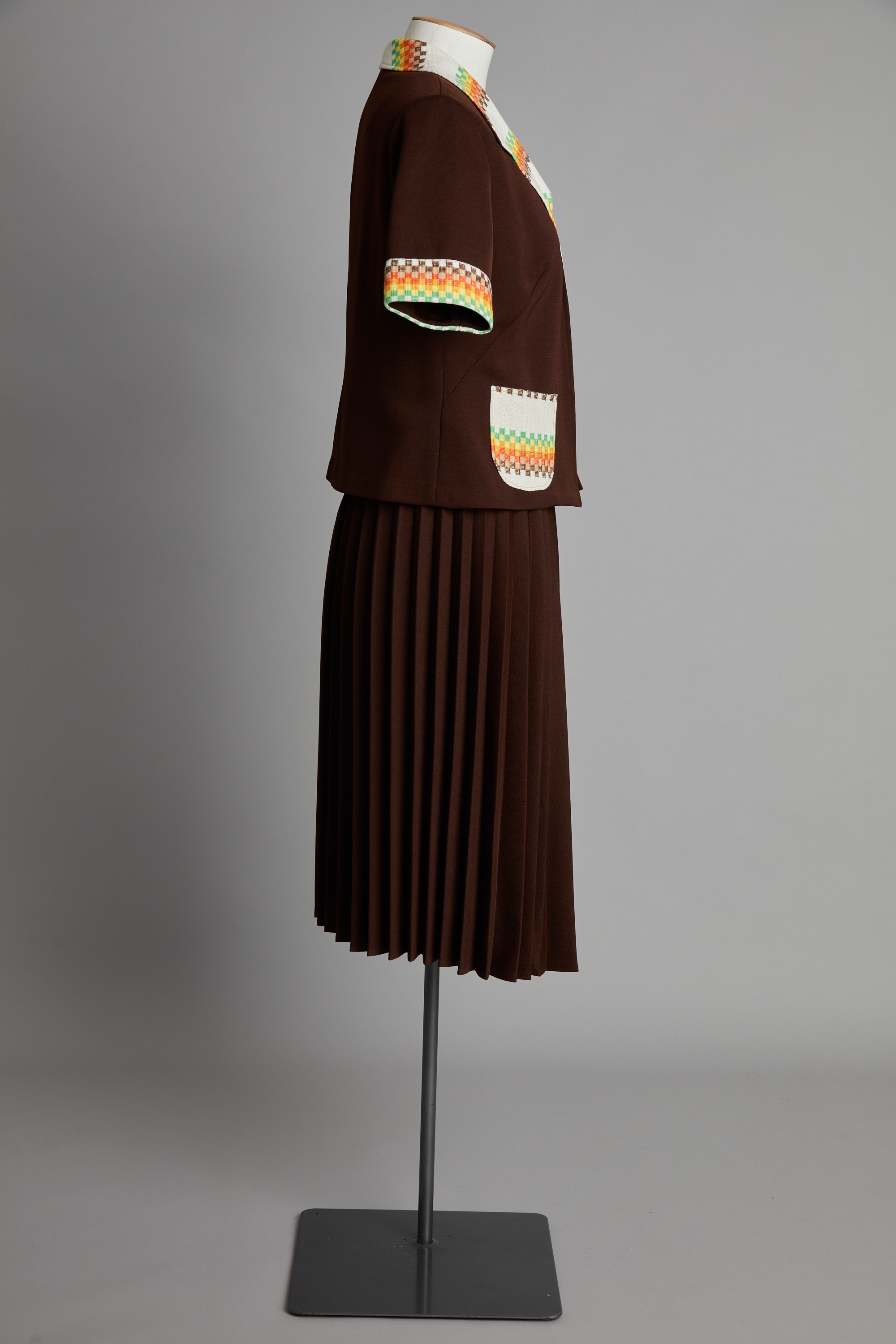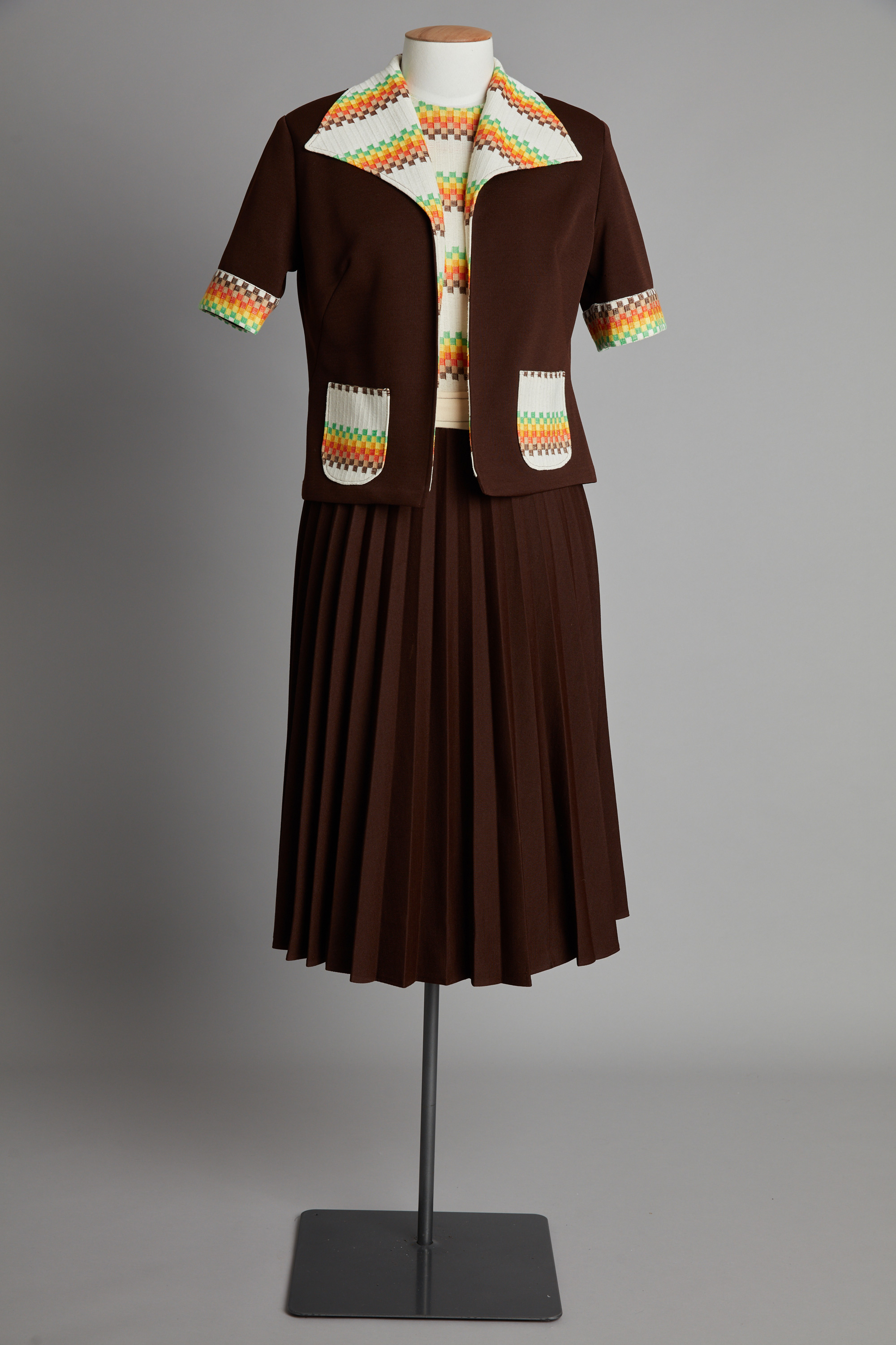 This dress and jacket was owned by Moyra Kyle who worked in the office at Classic Fashions.
