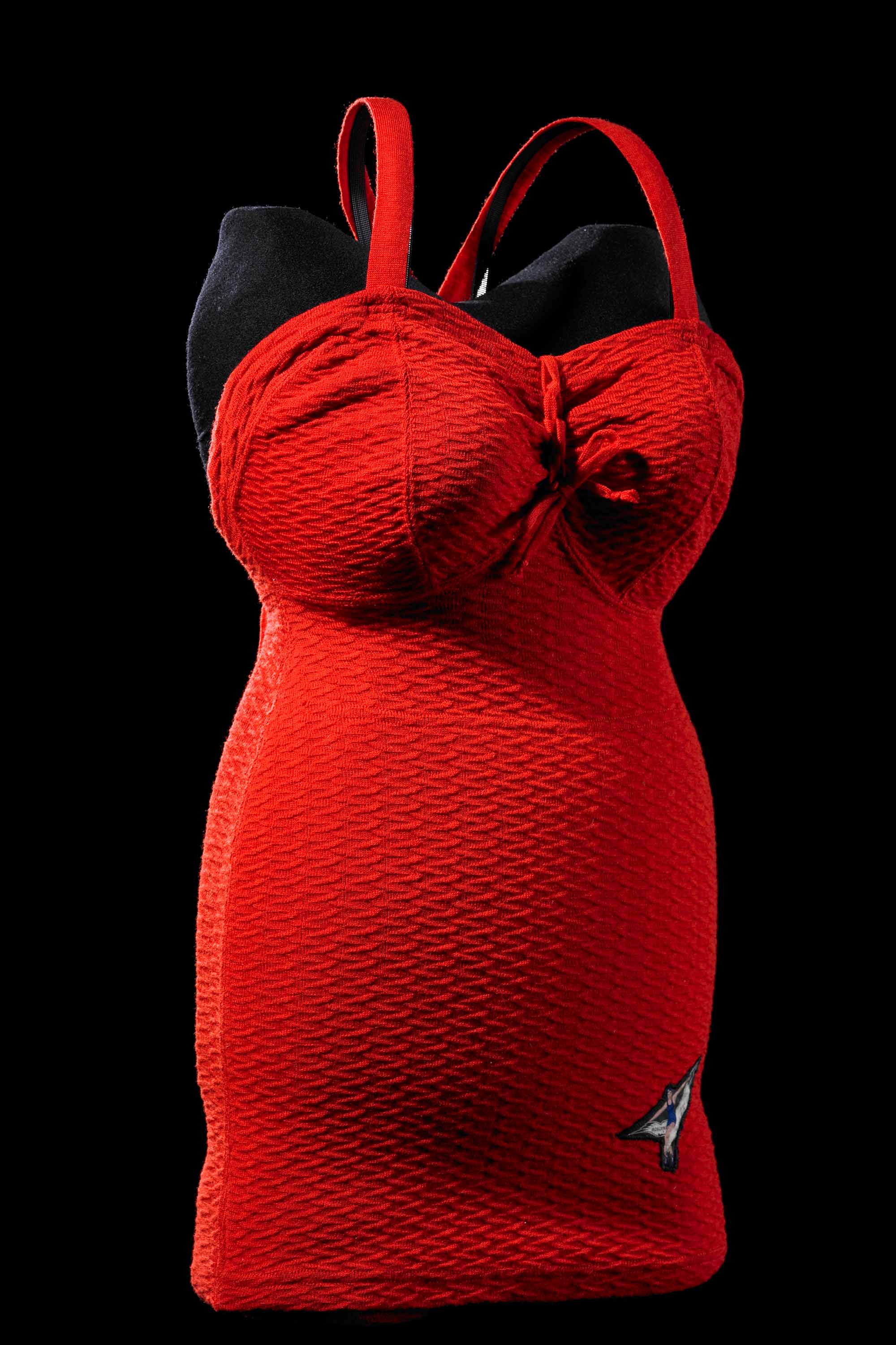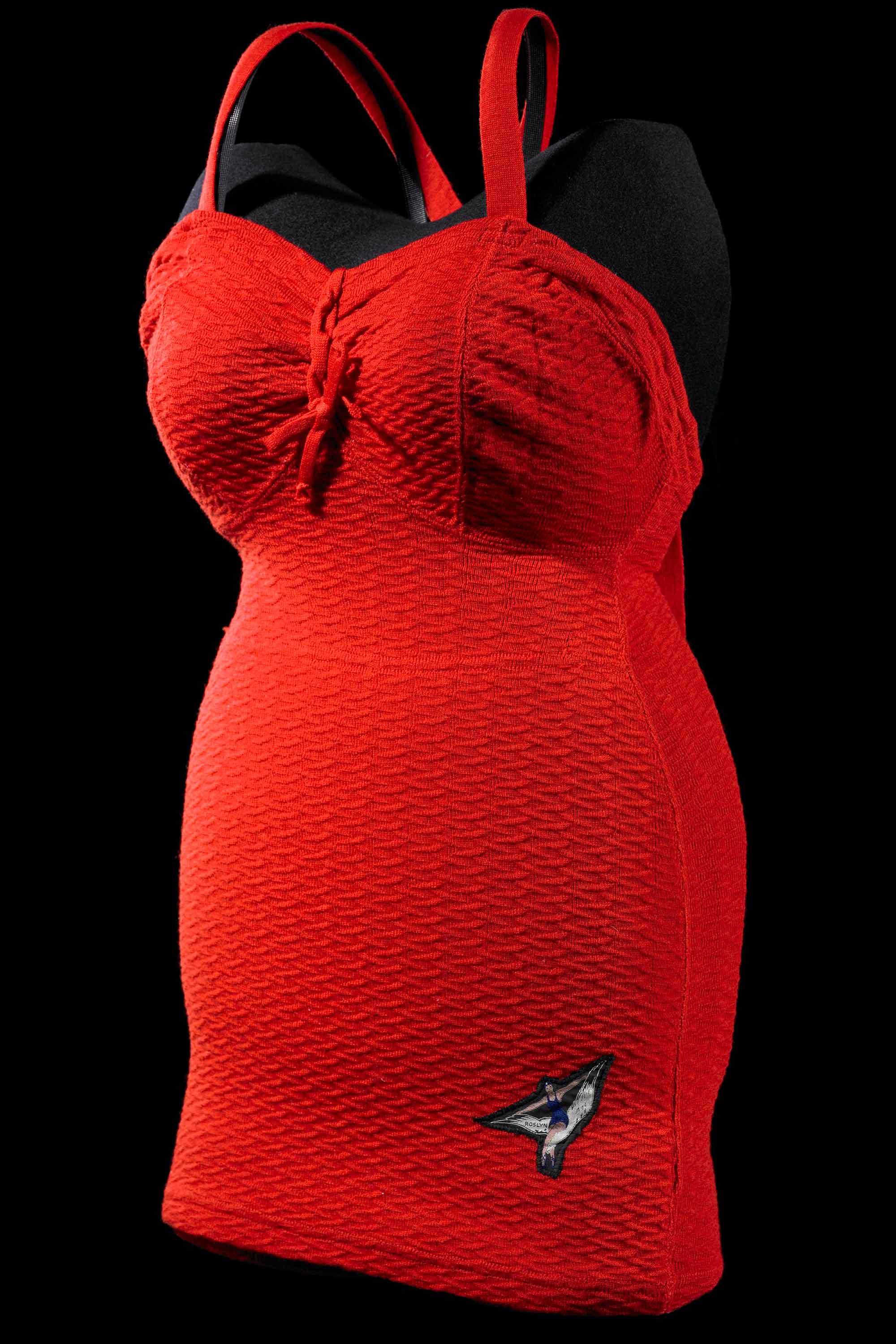 Wool quickly became a thriving industry in New Zealand in the 19th century. Woollen mills manufactured clothes, blankets and other woollen products under a range of labels. The label on this bathing suit is Roslyn Woollen Mills – one of a number of mills in Dunedin's Kaikorai Valley. Bathing suits were made from wool knit until the 1930s and 1940s when wool and lastex blends began to revolutionise the industry. The embroidered Roslyn label is similar to the Jantzen 'Diving Girl' introduced in 1920.