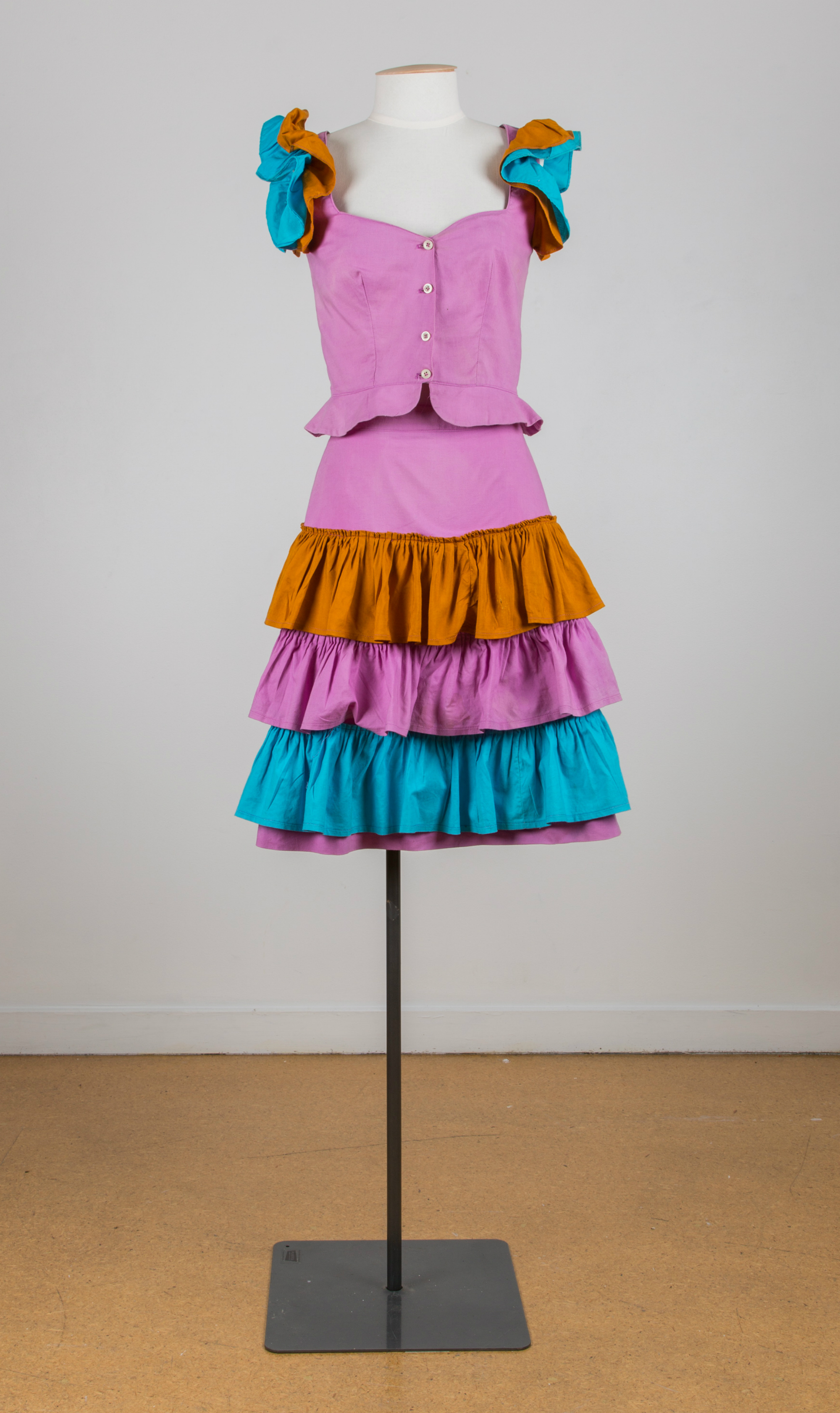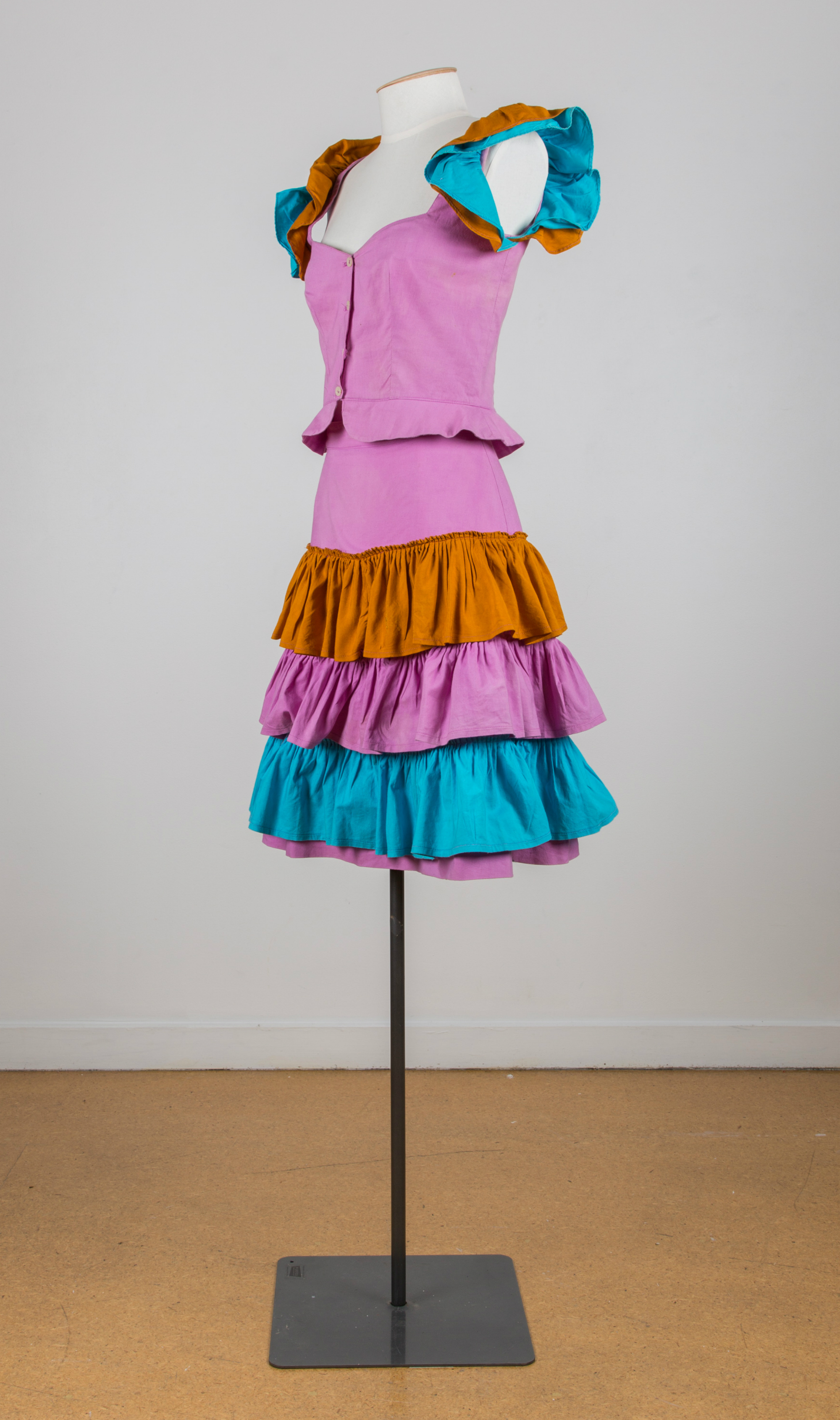 This outfit has frills on the sleeves and skirt, and also a small peplum on the top.