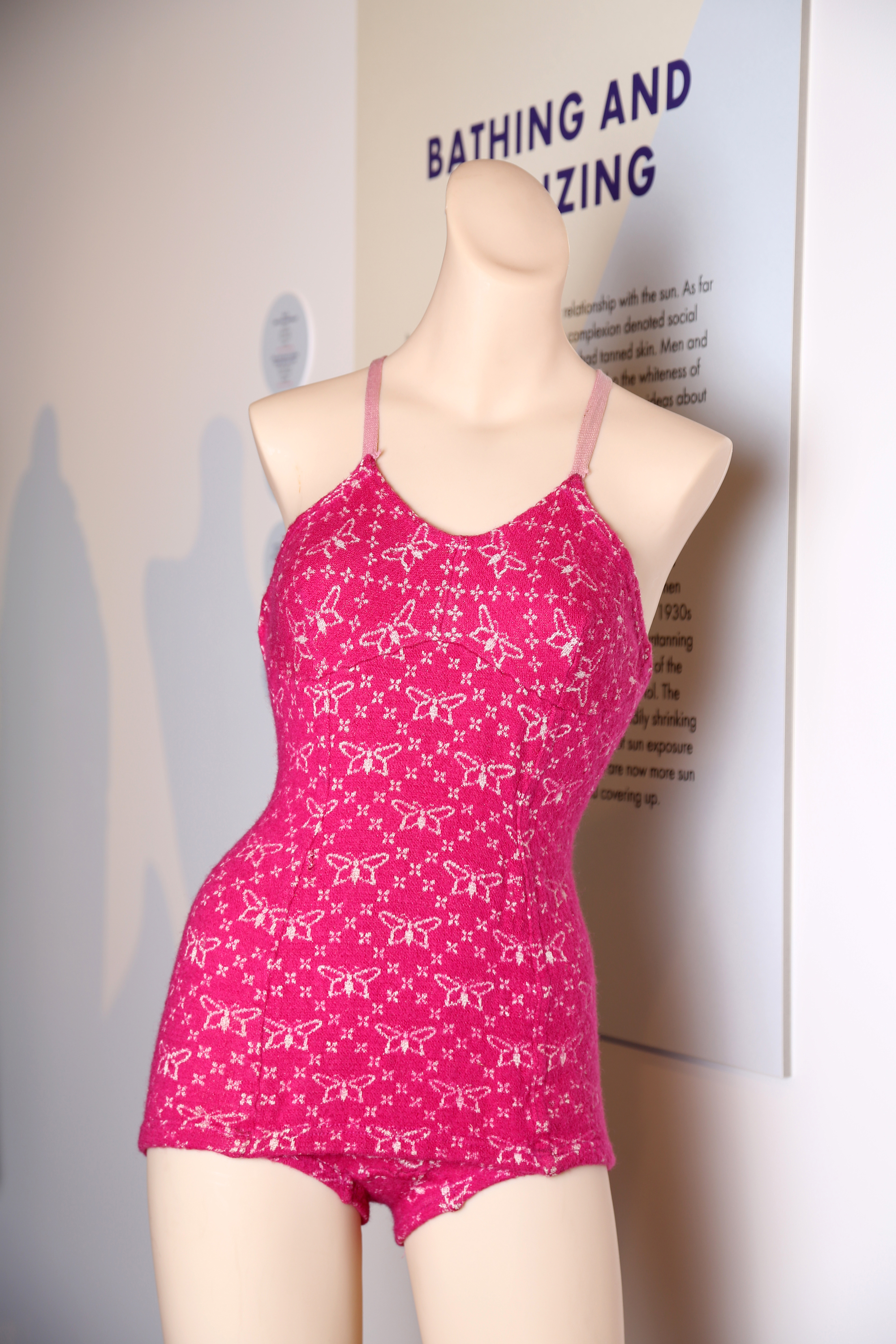 Shocking pink swimsuit with butterfly print