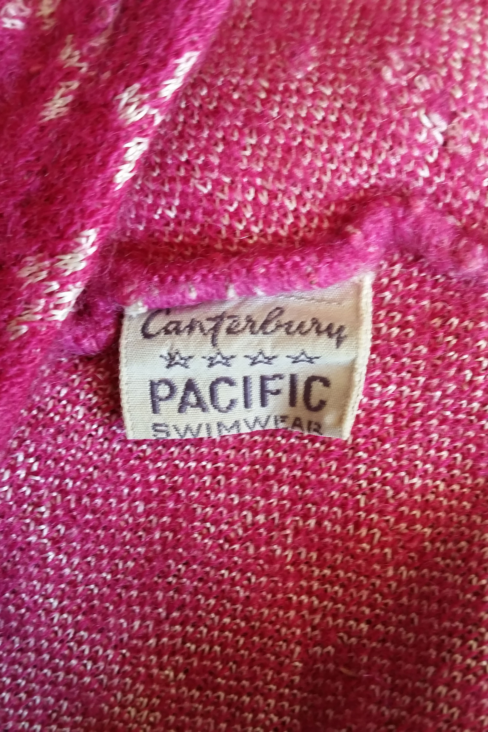 This Canterbury Pacific Swimwear bathing suit belongs to Gwenda Hansen (nee Robinson). "I wore this suit in the late 1940s on many holidays, including Alexandra, Timaru, Queenstown and Kaka Point. They were all good, but Timaru especially so as we spent a lot of time at Caroline Bay and attended the Bay Concert each afternoon in the soundshell and danced late into the night or early hours of the morning. I grew up on a farm in Moneymore, five miles out of Milton in South Otago. Mum and Dad would take us to the beach for the day. Sometimes it was to Bull Creek or Toko Mouth. There used to be a gala at Kaka Point on New Year’s Day. We’d join the children’s running races and win a penny if we were fast runners. Bull Creek was our favourite beach. Mum would have arranged for us to stay at Aunty Lottie’s crib. On a Sunday Dad would drive Mum and us four children the 15 miles there, and then come pick us up the next Sunday. It seemed to be the crib furthest away from the beach. It was a long walk there and back with all the gear we’d need for a picnic day – jerseys, coats, towels and food. Mum always took plenty of food on holiday. She’d be cooking for days beforehand. There was no electricity for lights or stoves, but that was as it was at home too."