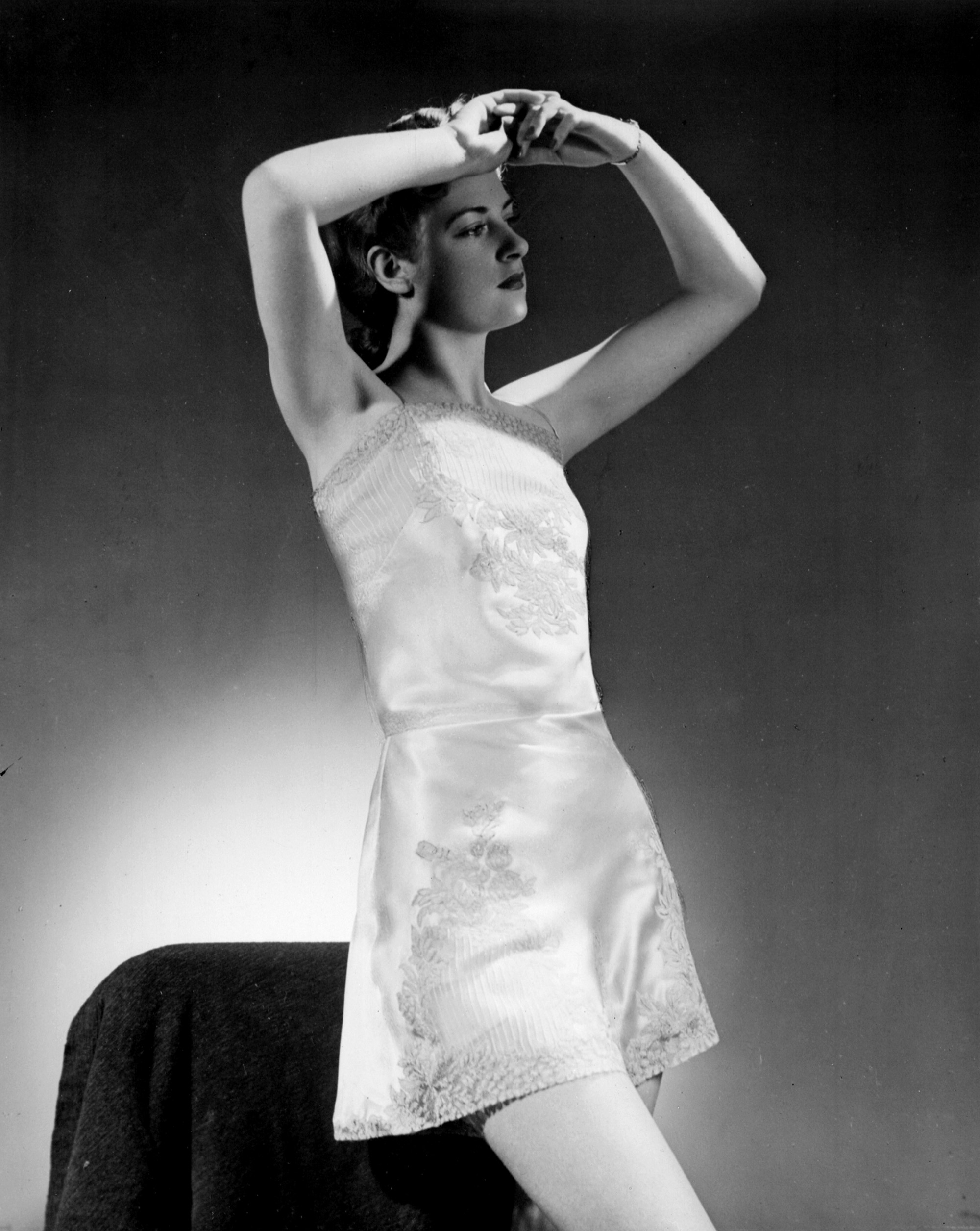 These camiknickers by Buckley were photographed by Auckland photographer Clifton Firth in the 1930s. They were an all-in-one garment that was later described as teddies.