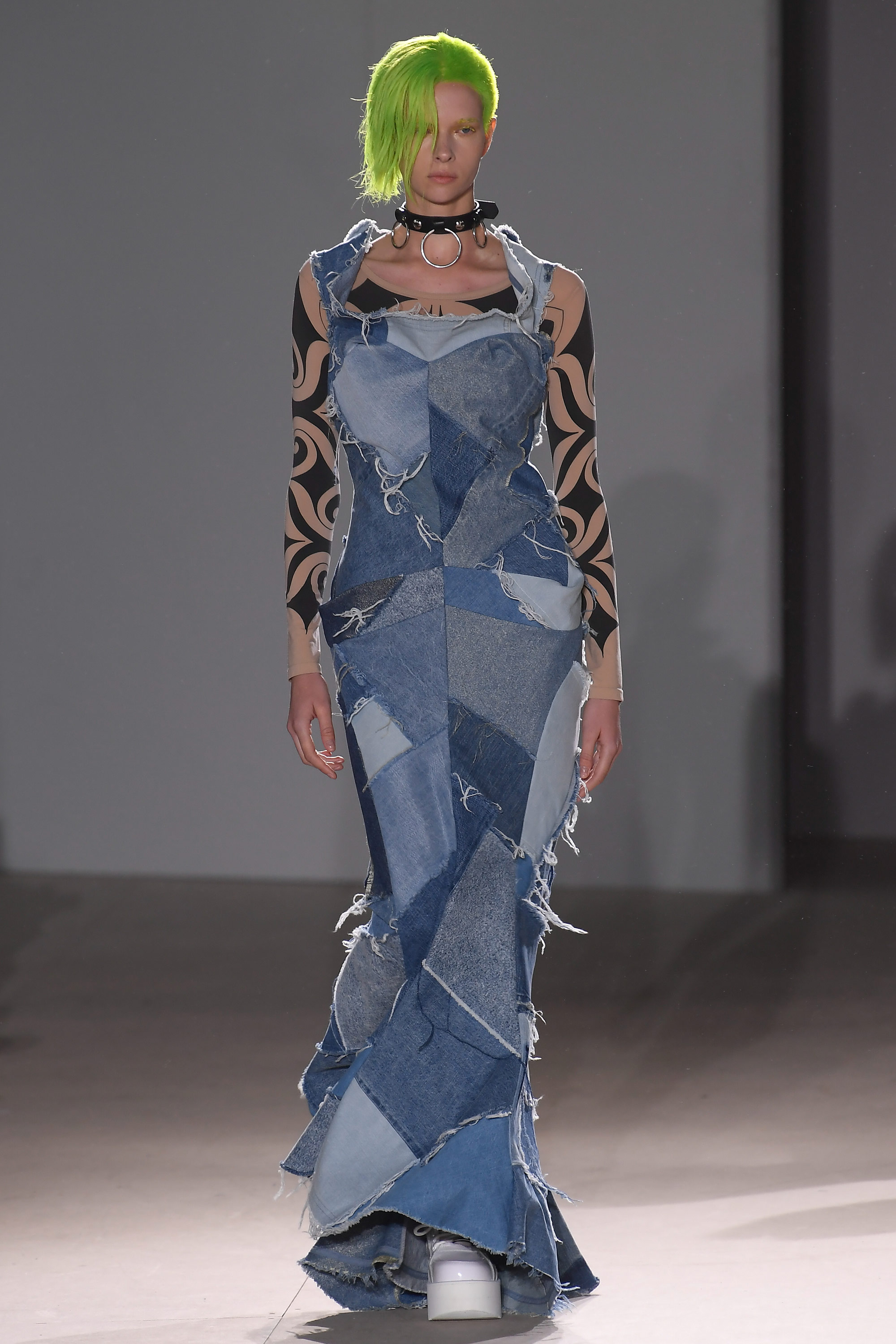 New York-based New Zealand tattoo artist Victor J Webster was commissioned by Japanese designer Junya Watanabe to create this design for the Comme des Garçons Spring Summer 2019 collection shown during Paris Fashion Week in September 2018. Victor learnt to tattoo at Moko Ink, a Māori art tattoo studio in Grey Lynn, Auckland under the tutelage of Inia Taylor, Croc Coulter and Calen Paris. Inspiration from Pacific Island art and the simple repetition of patterns in nature such as in a leaf or a fern frond, are reoccurring themes in Victor's art. Cloak by Ema-Lea Phillipps, earrings by Zelda Murray.