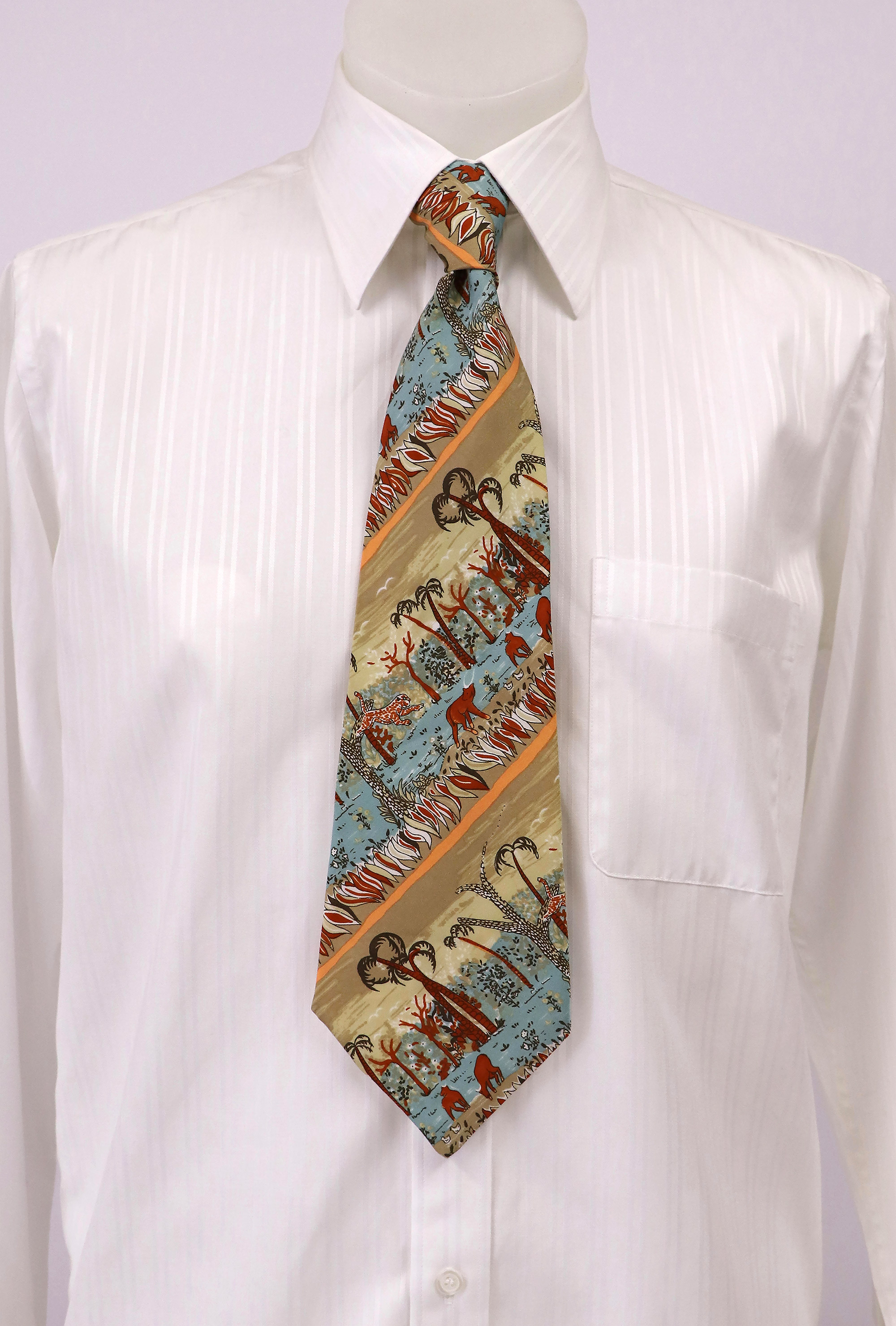 Ties in the 1970s were designed to make a bravura statement in keeping with the era's quirky, expansive and flamboyant collars and jacket lapels. Bright, heavily patterned ties were often worn with shirts that had just as much going on.