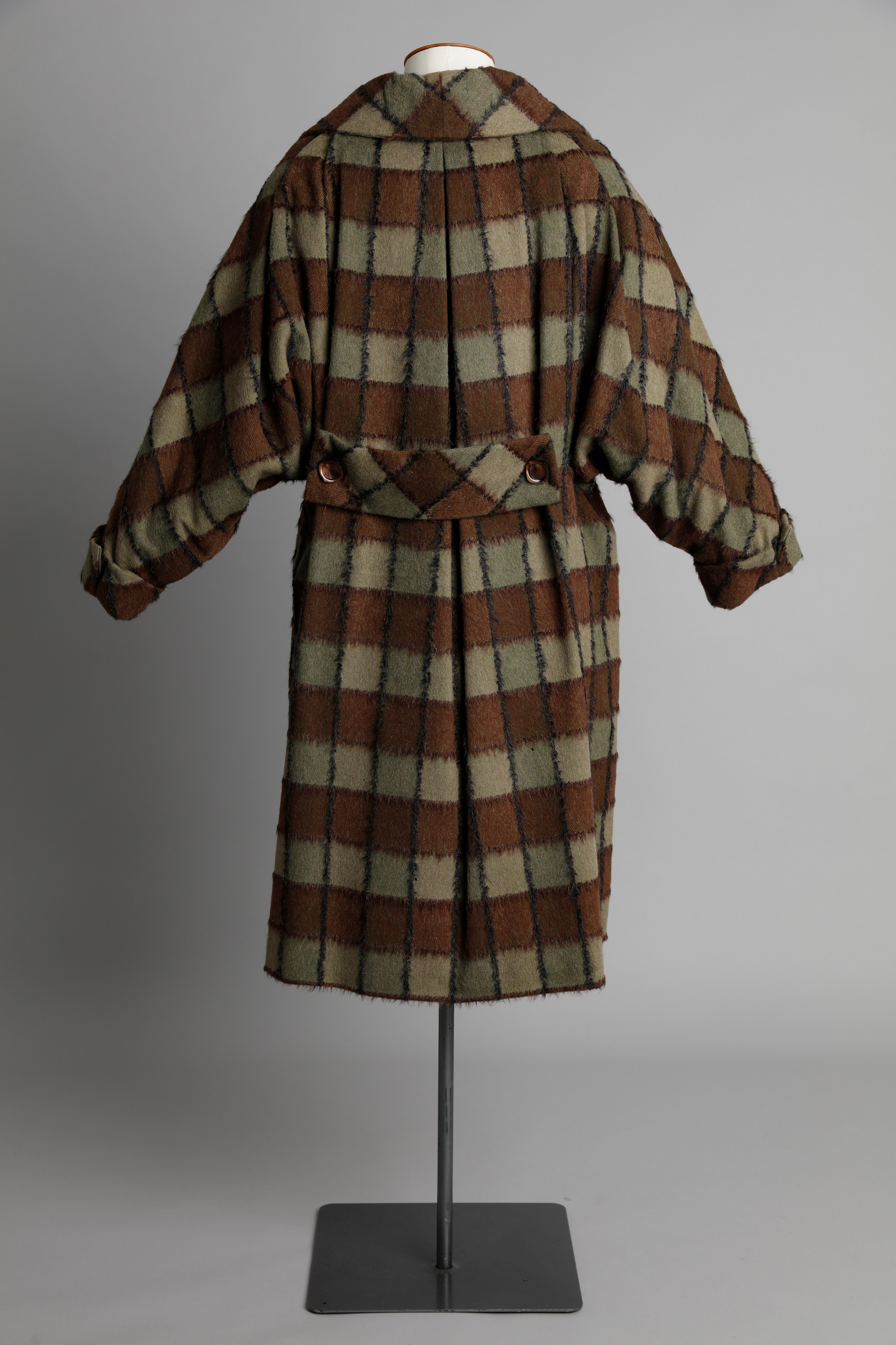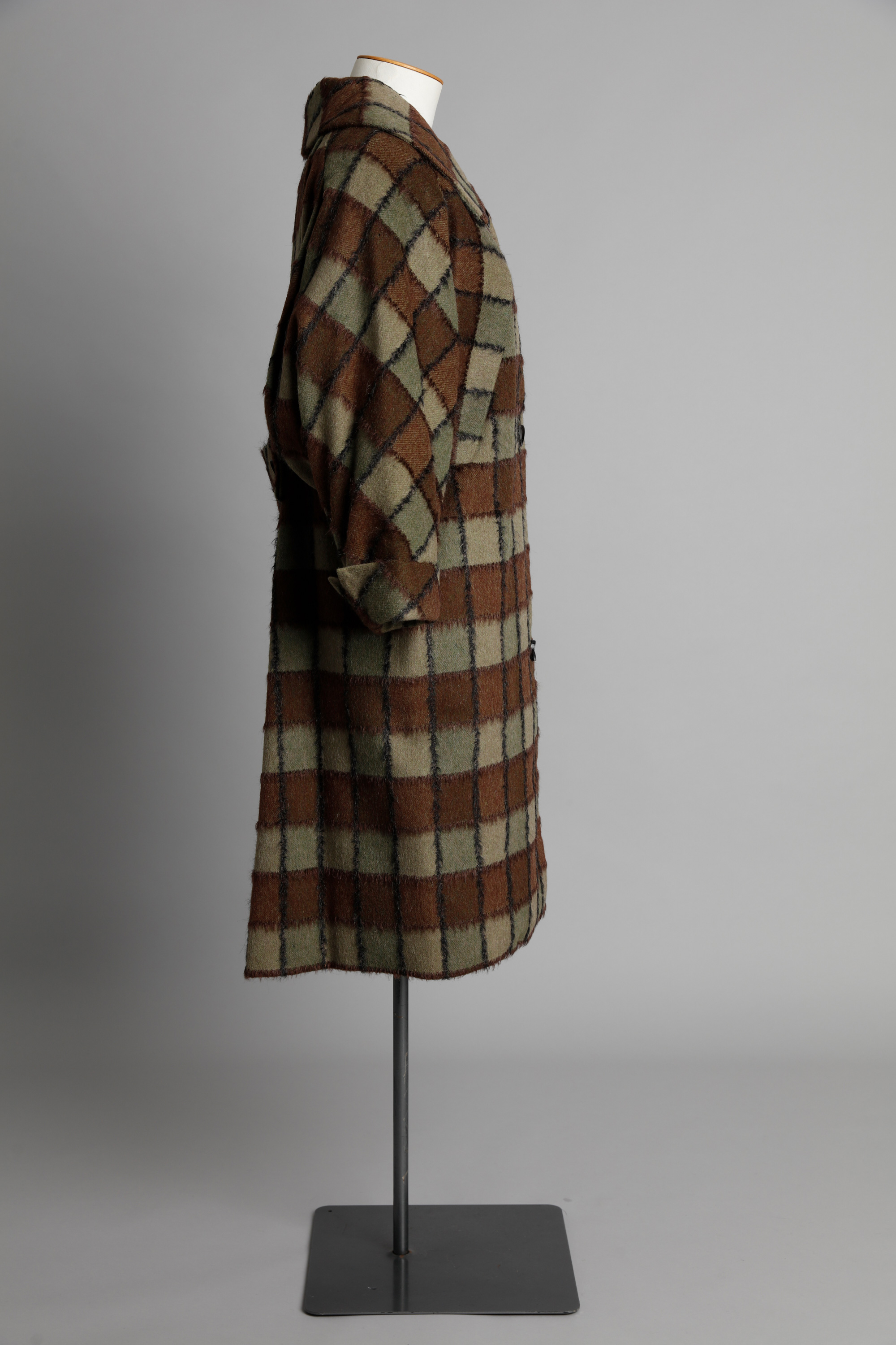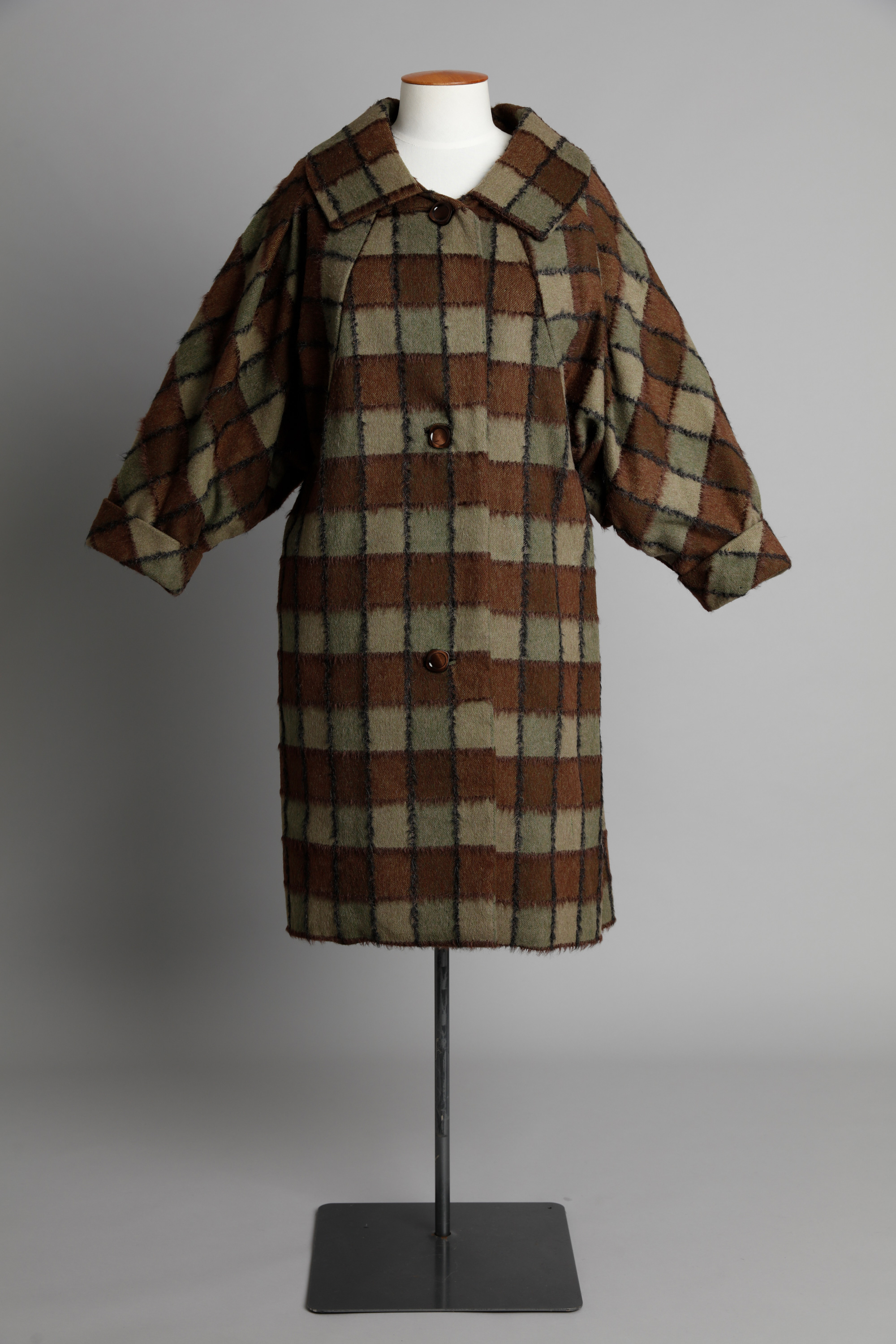 Wool check coat with deep raglan sleeve